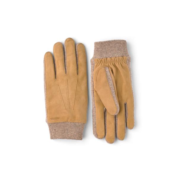 A timeless glove in the softest lambskin suede with a knitted cashmere lining. Cut and sewn by hand in Hestra’s workshop in Hungary. The glove cutters’ sense for the material is unique and their craftsmanship utterly superb, producing an incomparably supple glove. This glove has points on the backhand and a wrist strap with a covered press stud for the perfect fit. A classic that is beautifully warming in cold weather in autumn and winter.