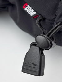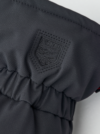 Hestra 3-layer Polyamide / Spandex 4 way stretch. Windproof, waterproof and breathable fabric.
